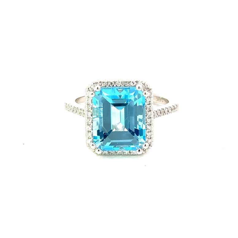 Indulge In Elegance With Our Exquisite 14Kw Diamond And Blue Topaz Ring. This Stunning Piece Features 0.18 Carats Of Brilliant Diamonds Set Alongside A Mesmerizing 5.82 Carat Blue Topaz Stone. Elevate Your Style With This Sophisticated And Luxurious Accessory That Exudes Timeless Beauty And Charm. Style Number JR9104BTW