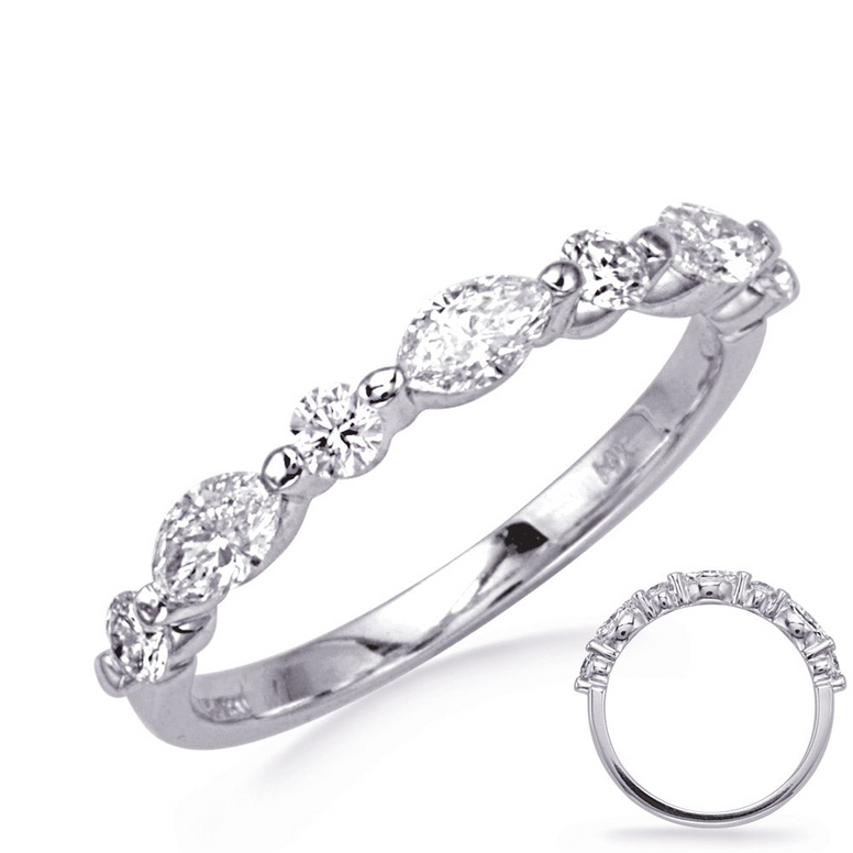 This Stunning Band Is Made Of Lustrous14K White Gold and 0.29 CTW Of Diamonds. There Are A Total Of 7 Stones Accenting This Band. This Beautiful Ring Features 0.15 CTW Of Marquise shaped Diamonds And 0.12 CTW Of Round Diamonds Which Are Set In A Shared Prong Setting. This Ring Is Beautiful By Itsself Or Paired With A Fabulous Engagement Ring. Style Number EN8371-B3.2MWG