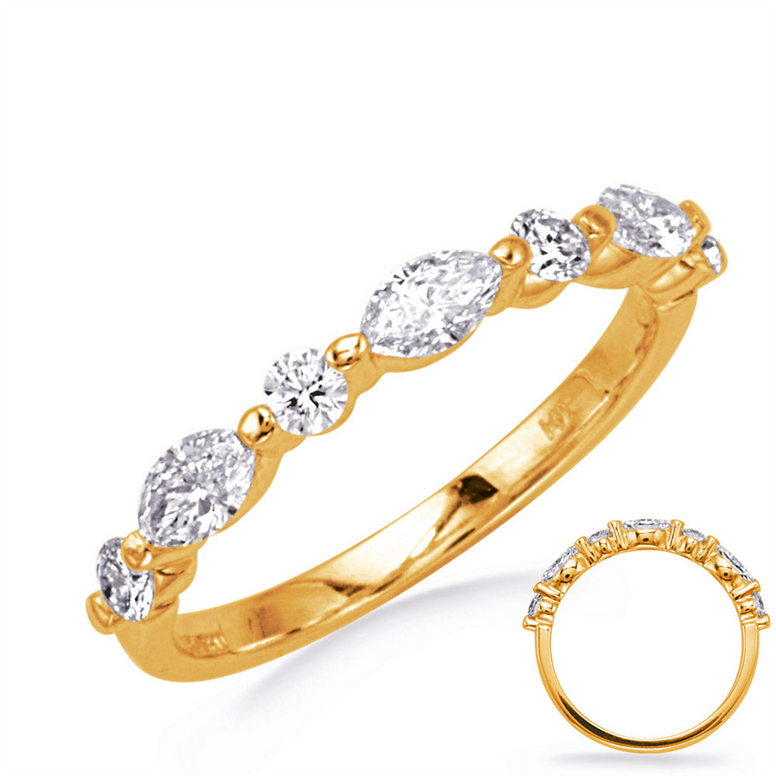This Stunning Band Is Made Of Lustrous14K Yellow Gold and 0.29 CTW Of Diamonds. There Are A Total Of 7 Stones Accenting This Band. This Beautiful Ring Features 0.15 CTW Of Marquise shaped Diamonds And 0.12 CTW Of Round Diamonds Which Are Set In A Shared Prong Setting. This Ring Is Beautiful By Itsself Or Paired With A Fabulous Engagement Ring Style Number EN8371-B3.2MYG