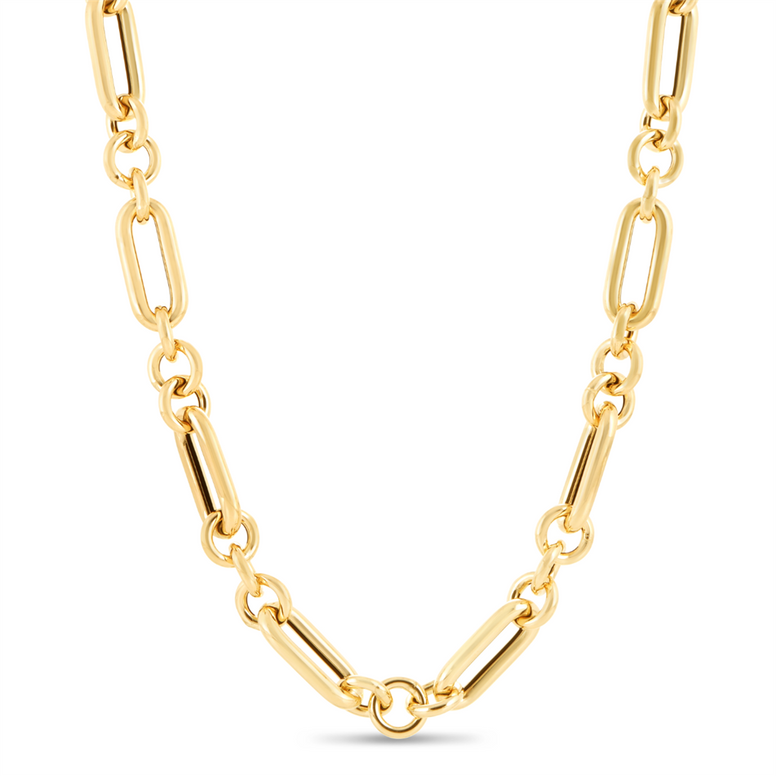 14K Gold Metropolitan Alternating Paperclip Round Links Chain Necklace