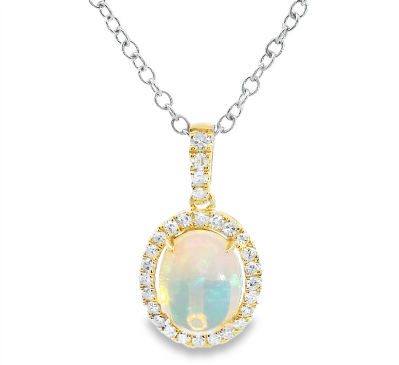 14K Gold Two-Tone Opal and Diamond Pendant Necklace