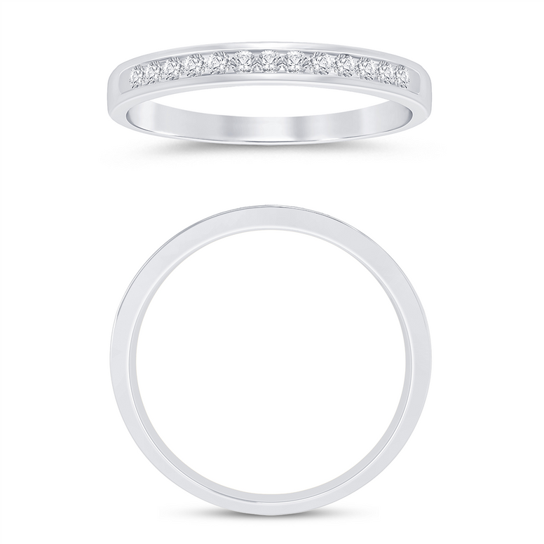 Delicate And Timeless, This 14K White Gold Diamond Band Features Approximately 0.16 Carats Of Round Brilliant-Cut Diamonds Gracefully Set In A Sleek Channel Design. The Half Eternity Style Offers A Refined Touch Of Sparkle While Maintaining Everyday Comfort And Durability. Crafted In Luminous White Gold, It’S The Perfect Complement To Any Engagement Ring Or A Graceful Piece Worn On Its Own. Style Number ZGR0390WCZ