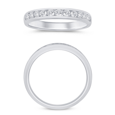 Classic And Refined, This 14K White Gold Diamond Wedding Band Captures Timeless Elegance With A Sleek, Modern Silhouette. Featuring Approximately 0.50 Carats Of Round Brilliant-Cut Diamonds Securely Nestled In A Smooth Channel Setting, This Design Offers Both Durability And Dazzling Sparkle. The Polished White Gold Band Enhances The Brilliance Of Each Diamond, Making It A Stunning Complement To Any Engagement Ring Or A Graceful Stand-Alone Statement. Style Number ZGR0392WCZ