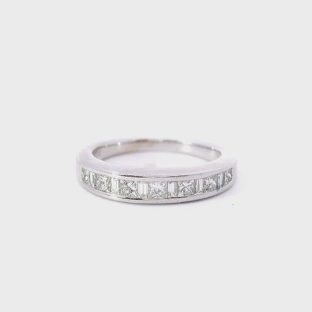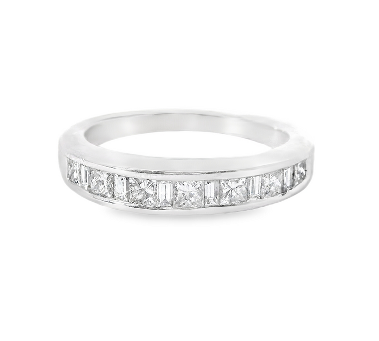 This Exquisite 14K White Gold Diamond Band Features A Stunning Combination Of Princess And Baguette Cut Diamonds, Totaling 0.55 Carats. The Diamonds Are Graded VS 2 Clarity, Ensuring A Brilliant Sparkle And Exceptional Quality. This Elegant Piece Is Perfect For Any Occasion, Whether As An Engagement Ring Or A Stylish Addition To Your Jewelry Collection. Its Timeless Design And Superior Craftsmanship Make It A Cherished Accessory For Years To Come. Style Number BAND.55