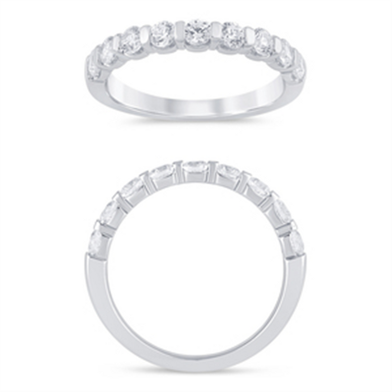 Modern Elegance Meets Timeless Brilliance In This 14K White Gold Diamond Band. Featuring Approximately 0.75 Carats Of Round Brilliant-Cut Diamonds, Each Stone Is Individually Secured In A Sleek Bar Setting That Allows Light To Shine Through From Every Angle. The Half Eternity Design Provides Both Comfort And Sparkle, Making This Piece A Stunning Choice For A Wedding Band, Anniversary Ring, Or Elegant Stackable Addition. Style Number ZGR0381WCZ