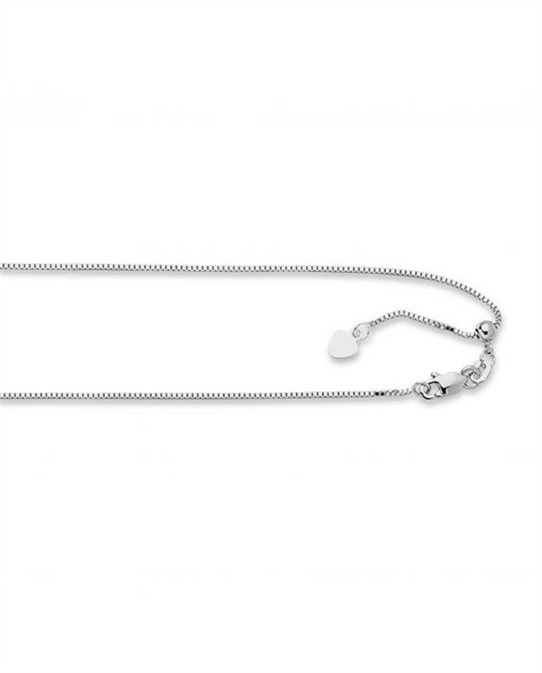 Our 14K White Gold Box Chain With Lobster Clasp Is The Perfect Accessory To Elevate Your Style And Add A Touch Of Elegance. Crafted With The Utmost Attention To Detail, This Chain Is Made With High-Quality White Gold And Is 0.85mm And Is 22" In Length. The Adjustable Feature Allows You To Customize The Length To Suit Your Preference, Making It Versatile And Suitable For Any Occasion. Style Number AWBOX1-22