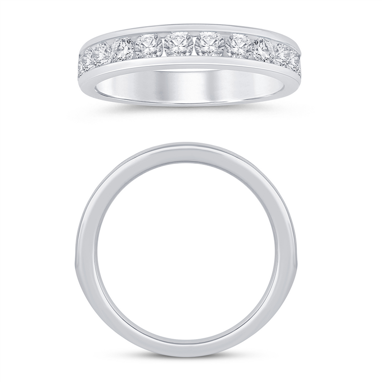 Timeless And Radiant, This 14K White Gold Diamond Band Showcases Sophistication In Its Purest Form. Featuring Approximately 1.00 Carat Total Weight Of Round Brilliant-Cut Diamonds, Each Stone Is Expertly Channel-Set For A Seamless Row Of Brilliance. The Smooth, Polished Edges Protect The Diamonds While Offering A Sleek And Comfortable Fit. Designed As A Half Eternity Band, It’S The Perfect Expression Of Enduring Love—Whether Worn Alone, As A Wedding Band, Or Stacked With Other Favorites. Style Number ZGR0394WCZ