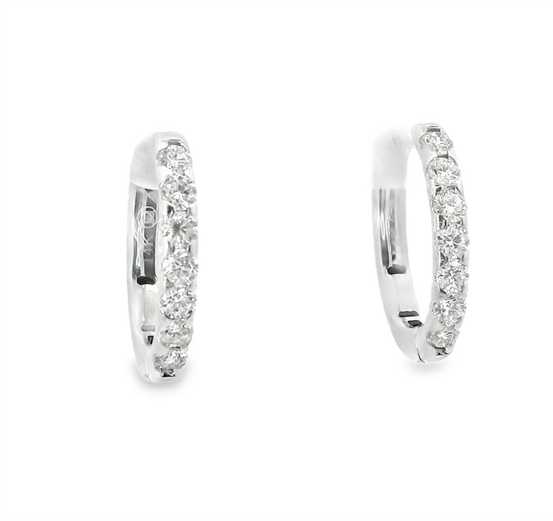 14K White Gold And 0.53 CTW Diamond Hoop Earrings