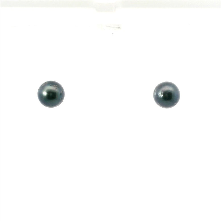14K White Gold 8MM Round Tahitian Pearl Stud Earrings