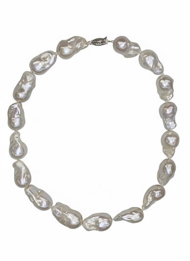 A Timeless Statement Of Natural Elegance, This Baroque Pearl Necklace Features Luminous Aaa-Rated Freshwater Pearls In Their Organic, Free-Form Shapes. Each Pearl Showcases A Brilliant White Sheen With Subtle Iridescent Overtones, Making Every Strand Completely Unique. Finished With A Classic Antique-Style Clasp, This Necklace Embodies Understated Luxury And Sophistication — Perfect For Both Everyday Wear And Formal Occasions. Style Number B-17MM