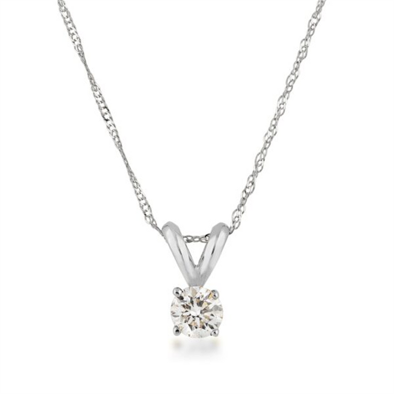 14K White Gold And 0.50 CTW Diamond Solitaire Pendant