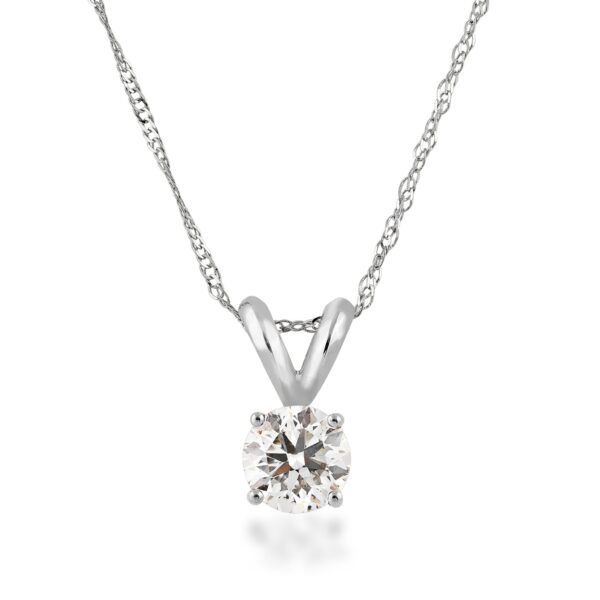 14K White Gold and 1 CTW Diamond Solitaire Pendant Necklace