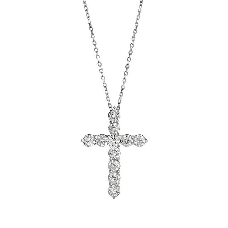 14K White Gold 1 CTW Lab Grown Diamond Cross Pendant Necklace