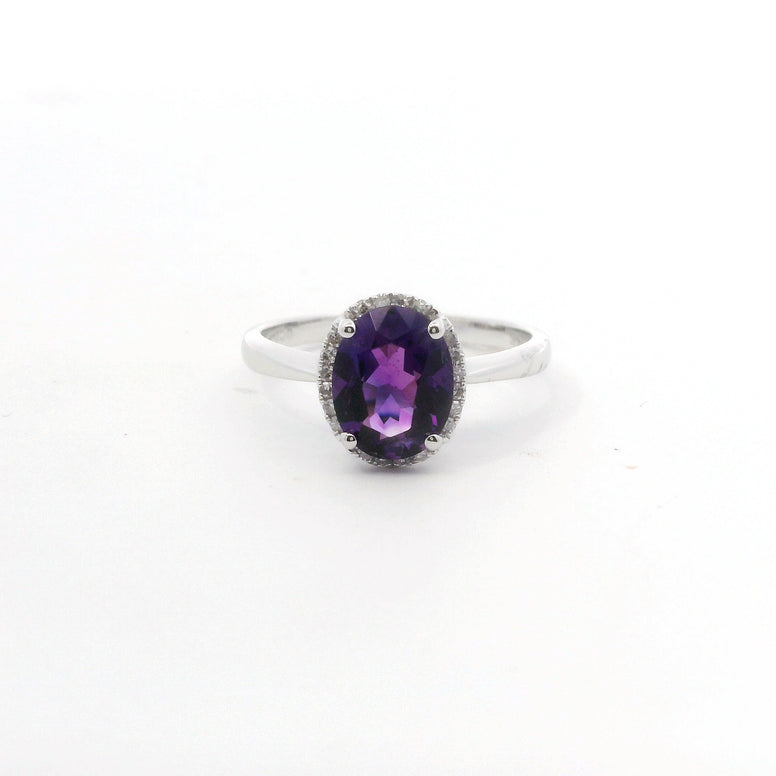 14K White Gold Diamond & Amethyst Oval Shaped Fashion Ring