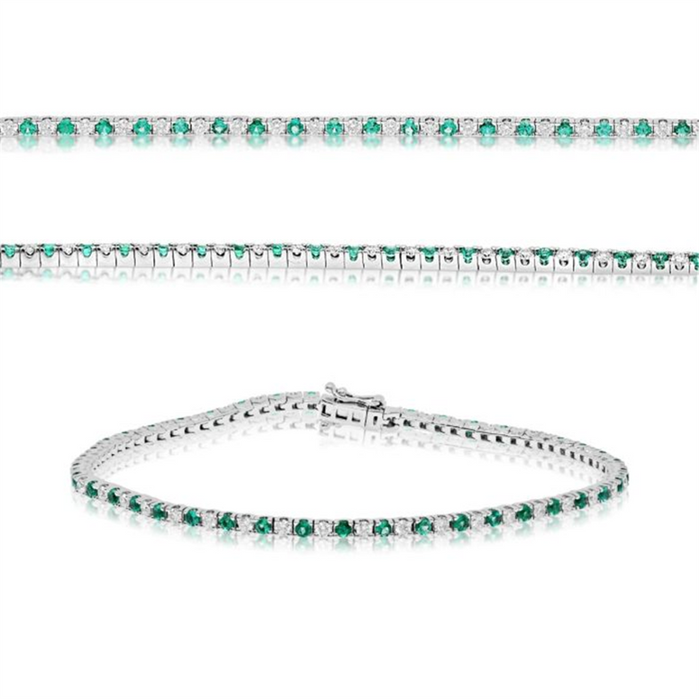 This Exquisite Tennis Bracelet Is Crafted In 14K White Gold And Showcases A Captivating Alternating Pattern Of Vivid 1.21 Ctw Round-Cut Emeralds And Brilliant .89 Ctw Diamonds. Each Stone Is Prong-Set To Maximize Sparkle, Creating A Seamless Flow Of Color And Light Around The Wrist. The Sleek Design Is Finished With A Secure Clasp, Blending Luxury With Everyday Wearability. A Perfect Piece For Celebrating Milestones, Adding Sophistication To Evening Attire, Or Gifting Someone Special, This Bracelet Is A True Heirloom In The Making. Style Number UB1804-11-2.00-EP-W