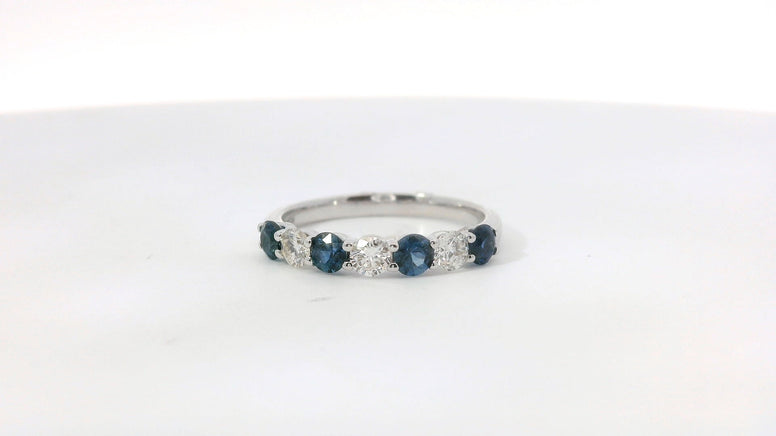 14K White Gold Sapphire and 0.78 CTW Diamond Band