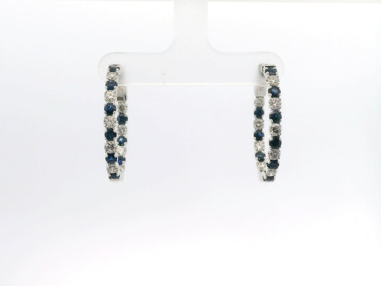 14K White Gold Sapphire And Diamond Inside/Out Hoop Earrings