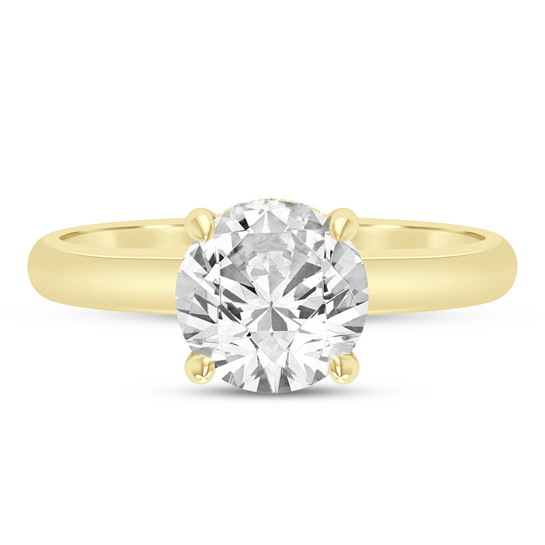 Discover The Epitome Of Elegance With Our Exquisite Oval Diamond Engagement Ring, Crafted In Luxurious 14K Yellow Gold. This Stunning Semi-Mount Features A Delicate Hidden Halo That Enhances The Brilliance Of Your Chosen 2 CT Round Diamond, Whether Lab-Grown Or Earth-Mined. With A Total Diamond Weight Of 0.05 CTW And G-H Color And SI Clarity, This Ring Is Designed To Showcase Your Unique Style And Commitment. Please Note, The Center Stone Is Not Included, Allowing You To Select The Perfect Diamond That Reflects Your Love Story. Elevate Your Proposal With This Timeless Piece That Promises To Dazzle For A Lifetime. Style Number ZGR0342YD-SM