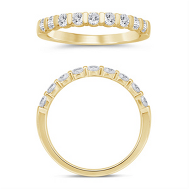 Sleek, Timeless, And Radiant, This 14K Yellow Gold Diamond Band Perfectly Balances Classic Style With Modern Elegance. Featuring Approximately 0.50 Carats Of Round Brilliant-Cut Diamonds, Each Stone Is Securely Held In A Polished Bar Setting That Allows Maximum Light To Enhance Its Brilliance. The Half Eternity Design Offers Both Comfort And Enduring Beauty, Making It An Ideal Choice For A Wedding Band, Anniversary Ring, Or A Sophisticated Stacking Piece. Style Number ZGR0380YD