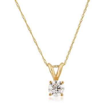 14K Yellow Gold 0.75 CT Diamond Round Solitaire Pendant Necklace