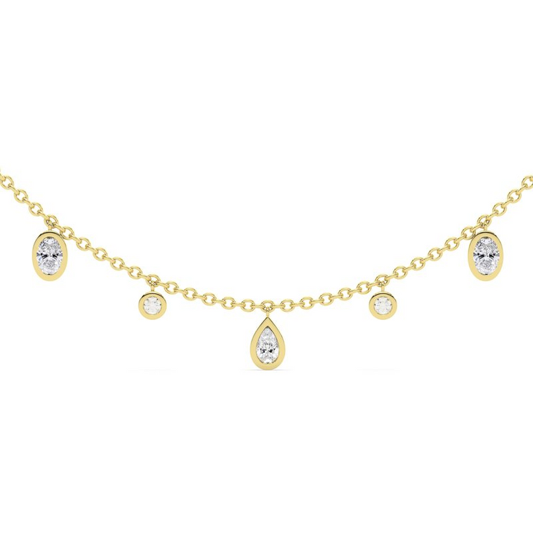 14K Yellow Gold 1.00 CTW Lab Grown Diamond Oval And Round Bezel Drop Necklace