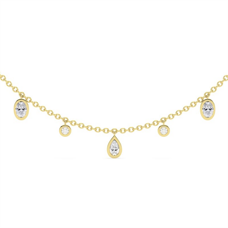 14K Yellow Gold 1.00 CTW Lab Grown Diamond  Oval And Round Bezel Drop Necklace