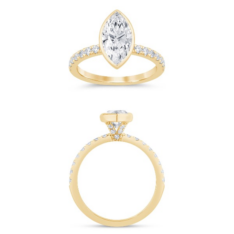 14K Yellow Gold 1.88 CTW Lab Grown Marquise Shaped Bezel Set Engagement Ring