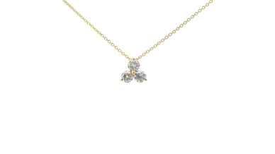 14K Yellow Gold 1 CT Diamond Three Stone Cluster Pendant Necklace