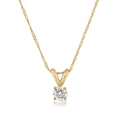 14K Yellow Gold And 0.50 CTW Diamond Round Solitaire Pendant Necklace