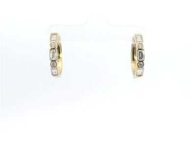 Enhance Your Jewelry Collection With These Exquisite 14K Yellow Gold And Diamond Hoop Earrings, Boasting A Total Diamond Weight Of 0.83 CTW. The Unique Multi-Shaped Bezel Set Design Beautifully Combines Brilliance And Sophistication, Making Them An Ideal Accessory For Any Event. Featuring 0.70 Ct Of Dazzling Diamonds Alongside 0.13 CT Of Intricate Detailing, These Earrings Are Not Only A Bold Statement Piece But Also A Timeless Addition To Your Wardrobe. Treat Yourself To Luxury And Allow These Stunning Hoops To Elevate Your Style With Ease.
