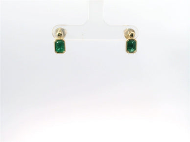 14K Yellow Gold And Emerald Bezel Set Drop Earrings