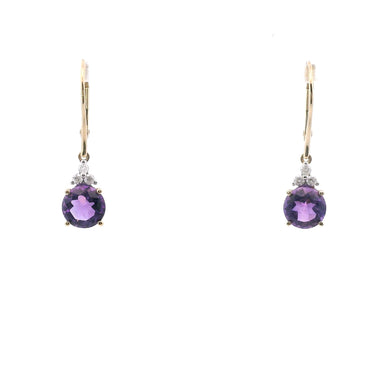 14K Yellow Gold Diamond & Amethyst Dangle Earrings