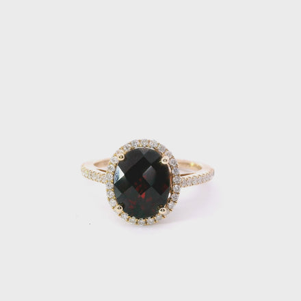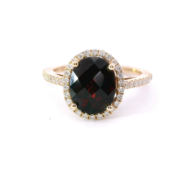 This Exquisite Fashion Ring Features A Stunning Oval-Shaped Design Crafted In 14-Karat Yellow Gold, Showcasing A Total Diamond Weight Of 0.31 Carats Alongside An Impressive 3.25 Carats Of Vibrant Garnet. The Harmonious Blend Of Sparkling Diamonds And Rich Garnet Creates A Striking Contrast, Making This Piece A Perfect Statement Accessory For Any Occasion. Its Elegant Craftsmanship And Luxurious Materials Ensure That It Will Be A Cherished Addition To Any Jewelry Collection. Style Number JR9470GA