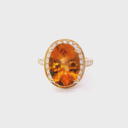 14K Yellow Gold Diamond And Oval Shaped Oval Citrine Fashion Ring