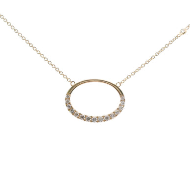 Elegant With A Modern Touch, This 14K Yellow Gold Diamond Oval Pendant Necklace Is Designed To Add Effortless Sparkle To Any Look. The Sleek Polished Oval Silhouette Is Accented Along The Lower Curve With 0.38 Carats Total Weight Of Brilliant Round Diamonds, Creating A Beautiful Balance Of Shine And Minimalism. Suspended From A Delicate Gold Chain, This Piece Offers Timeless Sophistication That Can Be Worn Alone For A Refined Statement Or Layered With Your Favorite Necklaces For A Contemporary Style. Style Number ND3010-304