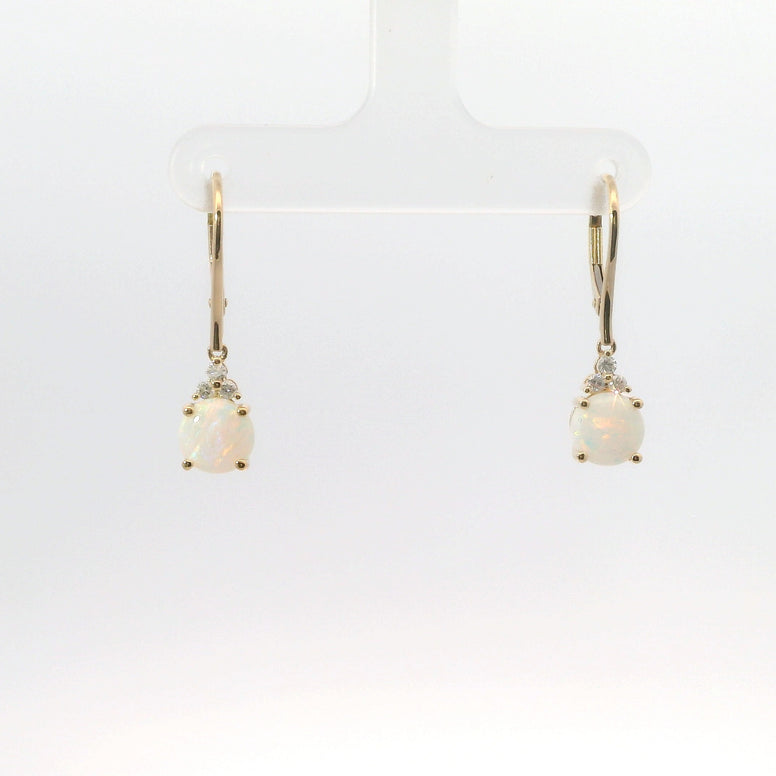 14K Yellow Gold Diamond & Opal Dangle Earrings