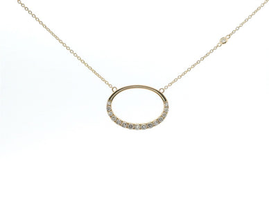 14K Yellow Gold Diamond Oval Pendant Necklace