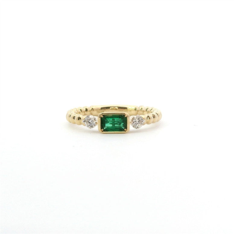 A Modern Twist On A Timeless Classic, This 14K Yellow Gold Fashion Ring Features A Striking Emerald-Cut Emerald Set In An Elegant East/West Orientation. Flanked By Two Sparkling Round Diamonds, The Vivid Green Center Stone Brings A Pop Of Rich Color And Sophistication. The Polished Yellow Gold Band Is Crafted With A Beaded Design, Adding Texture And Contemporary Flair To The Piece. Perfect For Stacking Or Wearing As A Standalone Statement, This Ring Balances Bold Elegance With Everyday Wearability—Making It An Ideal Choice For Those Who Love Distinctive, Stylish Jewelry. Style Number LDB6339_EME-302