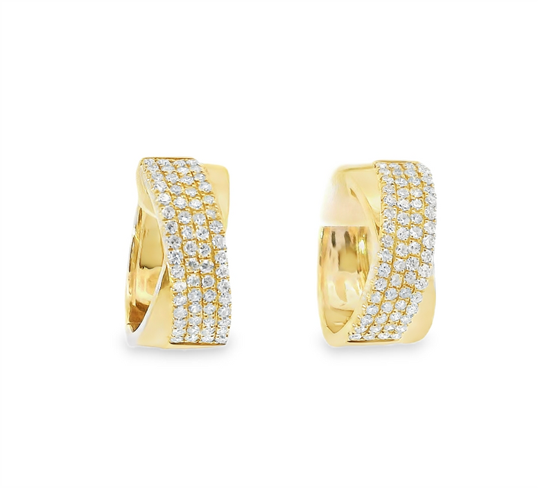 These Elegant 14K Yellow Gold Huggie Hoop Earrings Are Adorned With A Stunning Array Of 0.63 CTW Pave' Sparkling Diamonds. The Intricate Design And Luxurious Finish Make Them The Perfect Accessory For Any Sophisticated Occasion. Style Number ED3837-304