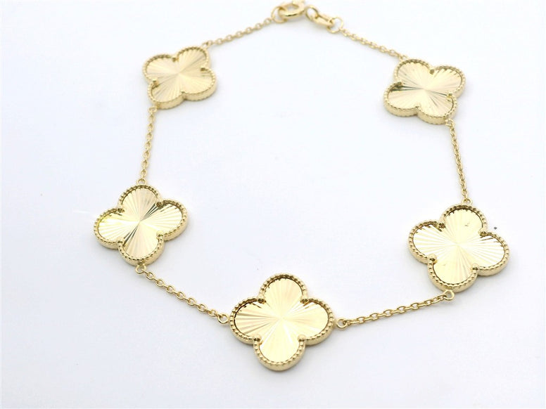 14K Yellow Gold Stationary Clover Fashion Bracelet