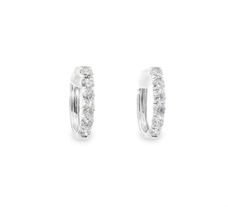 14K White Gold And 1.20 CTW Diamond Hoop Earrings