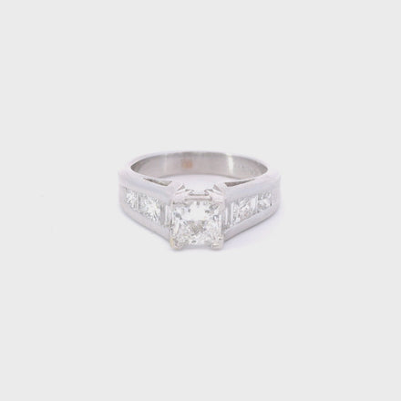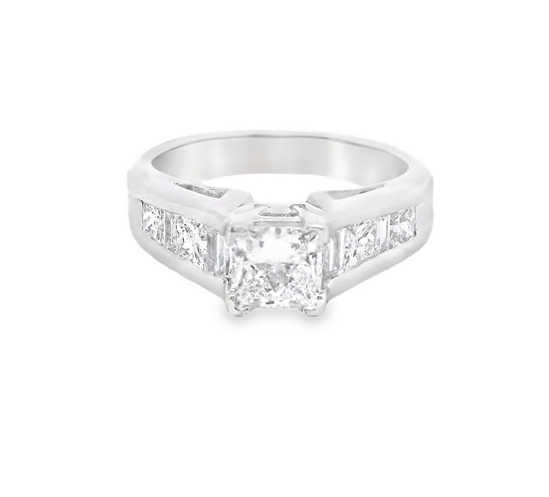 This Exquisite Engagement Ring Features An 18K White Gold Setting Adorned With A Stunning Combination Of 0.71 Carats Of Princess-Cut And 0.59 Carats Of Baguette Diamonds. The Diamonds Are Graded F For Color And VVS 2 For Clarity, Ensuring Exceptional Brilliance And Sparkle. The Elegant Design Showcases The Unique Shapes Of The Stones, Creating A Timeless Piece That Symbolizes Love And Commitment. Perfect For The Discerning Individual Seeking A Sophisticated And Luxurious Engagement Ring. Style Number ENG1.30CT