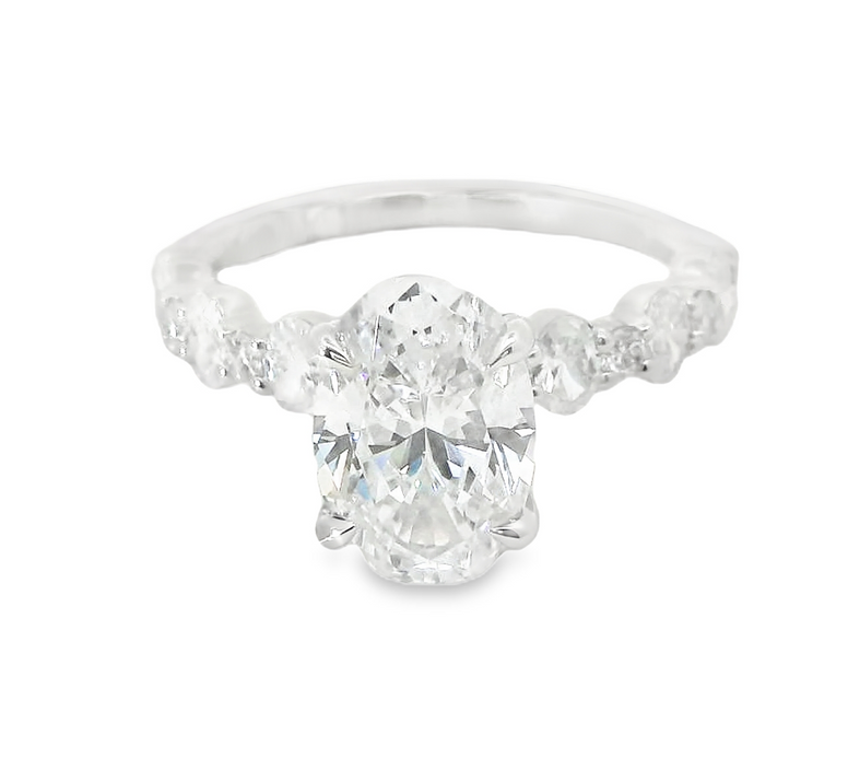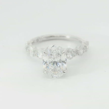 Discover The Exquisite A.Jaffe 14K White Gold And Diamond Semi-Mount Engagement Ring, Featuring A Stunning 0.77 CTW Of G/SI Diamonds In A Captivating Shared Prong And Pave Setting. Designed To Hold A Magnificent 2 CTW Oval Diamond Of Your Choice, This Ring Offers The Perfect Blend Of Elegance And Personalization. Please Note That The Center Stone Diamond Is Sold Separately, But Is Readily Available To Complete Your Dream Ring. Elevate Your Proposal With This Timeless Piece That Embodies Both Sophistication And Romance. Style Number MECOV2956l/277B