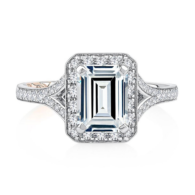 A.JAFFE Emerald Cut Halo Engagement Ring with Milgrain Edge