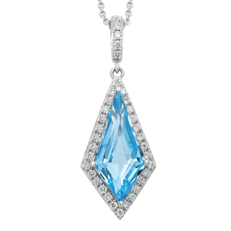 Artisty 14K White Gold Blue Topaz and Diamond Kite Shaped Pendant Necklace
