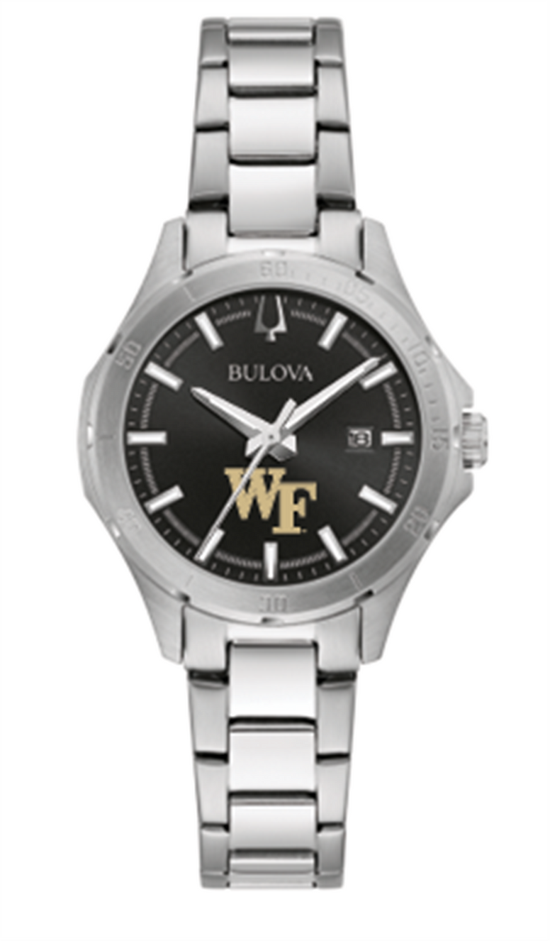 Bulova Ladies Wake Forest "WF" Black Dial Stainless Steel Bracelet Watch