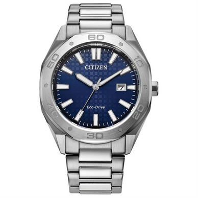Confidently Go From Work To Play With The New Weekender Sport. Featuring A Silver-Tone Stainless Steel Case Measuring 41mm In Diameter, The Sports-Focused Timepiece Makes Use Of Sharp Lines And Contrasting Styling To Make A Statement On The Wrist. A Faceted 60-Minute Bezel, H-Link Bracelet, And 100M Water Resistance Ensure All-Purpose Wear. On The Dial, A Textured Blue Display Is Presented, With Applied Indices In Bright White Alongside A 3 O'clock Date Window Providing High Legibility And Daily Utility. Featuring Citizen's Eco-Drive Technology, Sustainably Powered By Any Light And Never Needs A Battery. Caliber Number E111. Style Number BM7630-80L