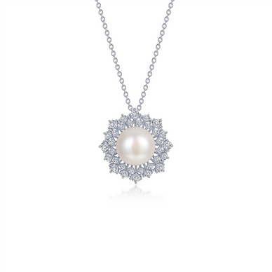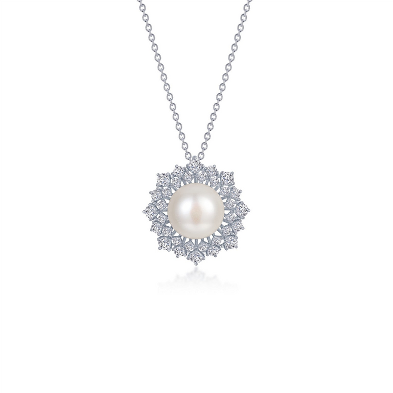 Elegant And Sophisticated. This Oversized Cultured Freshwater Pearl Sunburst Necklace Is Set With Lafonn's Signature Lassaire Simulated Diamonds In Sterling Silver Bonded With Platinum.