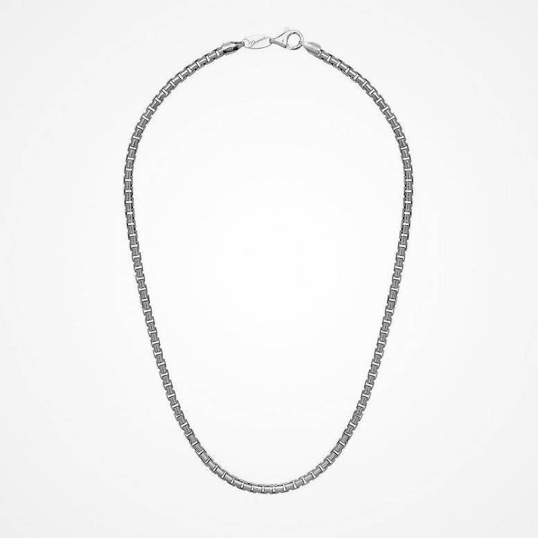 Elevate Your Style With The Sleek Sophistication Of The Desmos Venetian Box Chain Necklace. Crafted In Italy With Precision, This 22-Inch Chain Features The Classic Box Link Design, Offering Both Durability And A Clean, Modern Look. Finished In High-Quality Rhodium Plating, It Delivers A Polished Shine And Tarnish Resistance, Making It Perfect For Everyday Wear Or Layering With Other Pieces. Strong Yet Refined, This Chain Is A Versatile Essential For The Modern Man’S Collection. Style Number VENETIAN BOX W 22