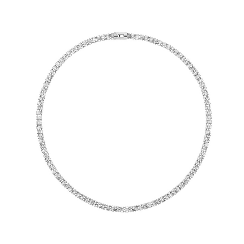 Desmos Rhodium Plated Infinity Round 5 Row Necklace 18"